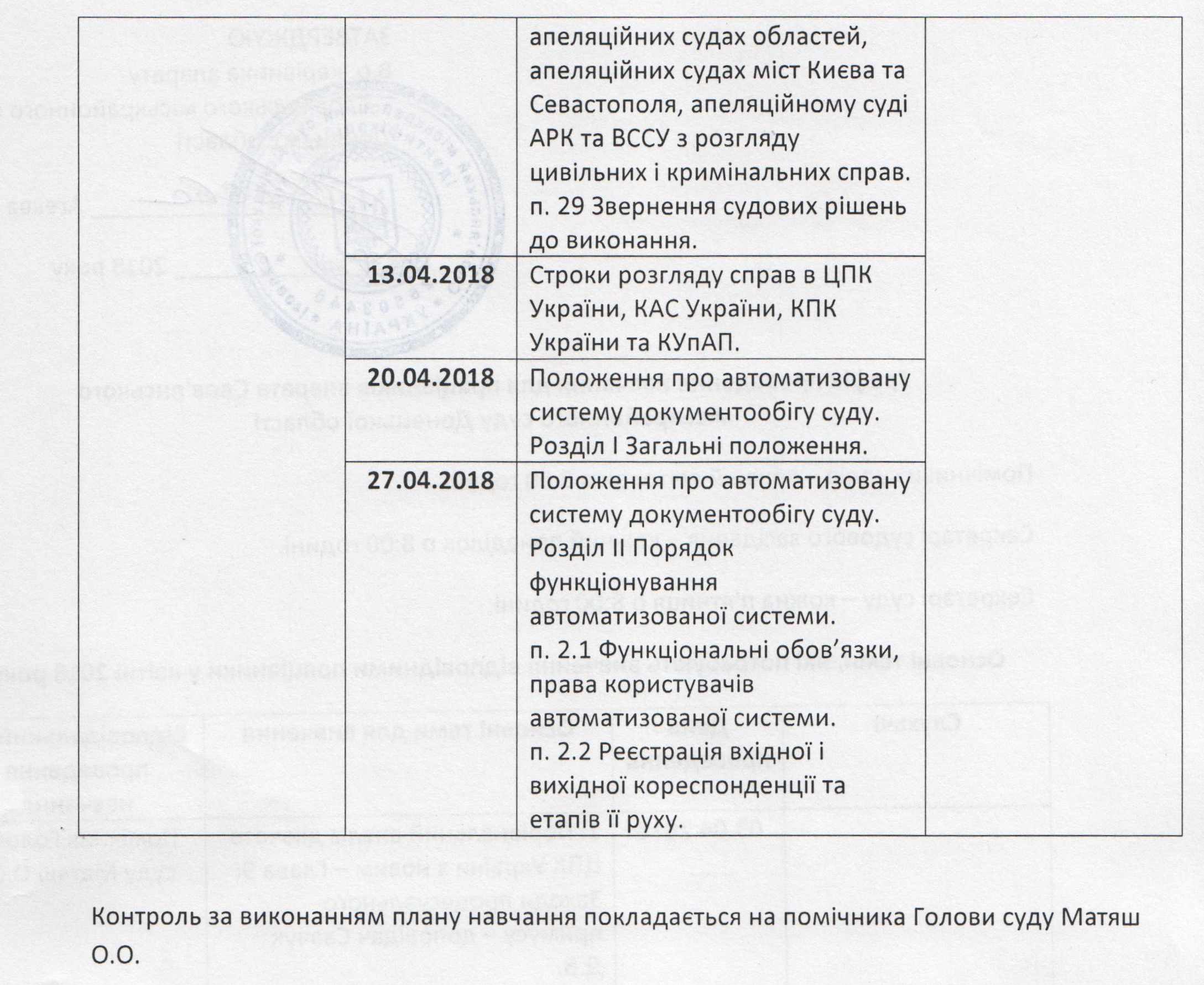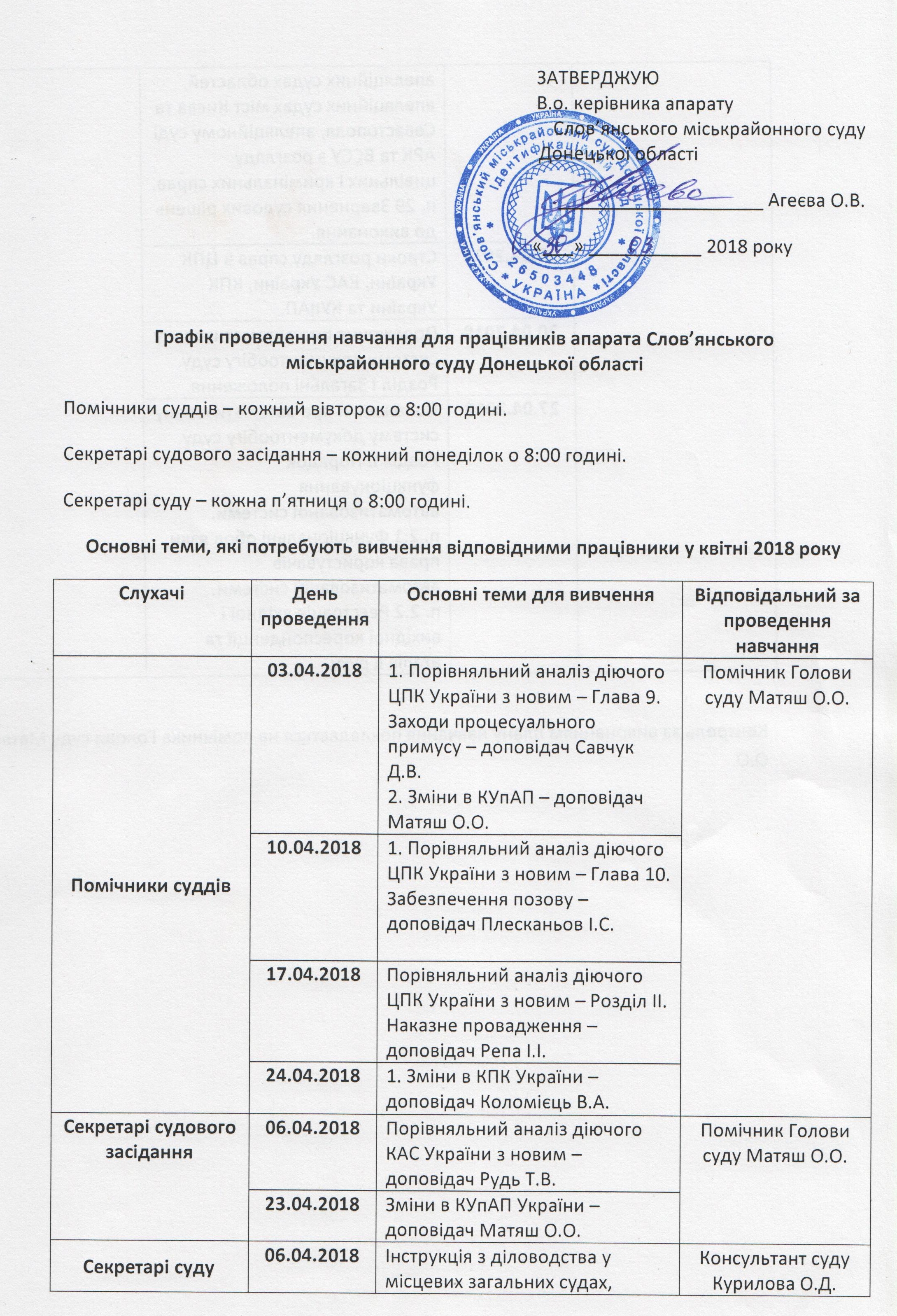 План занять для помічників суддів, секретарів судового засідання та секретарів суду на квітень