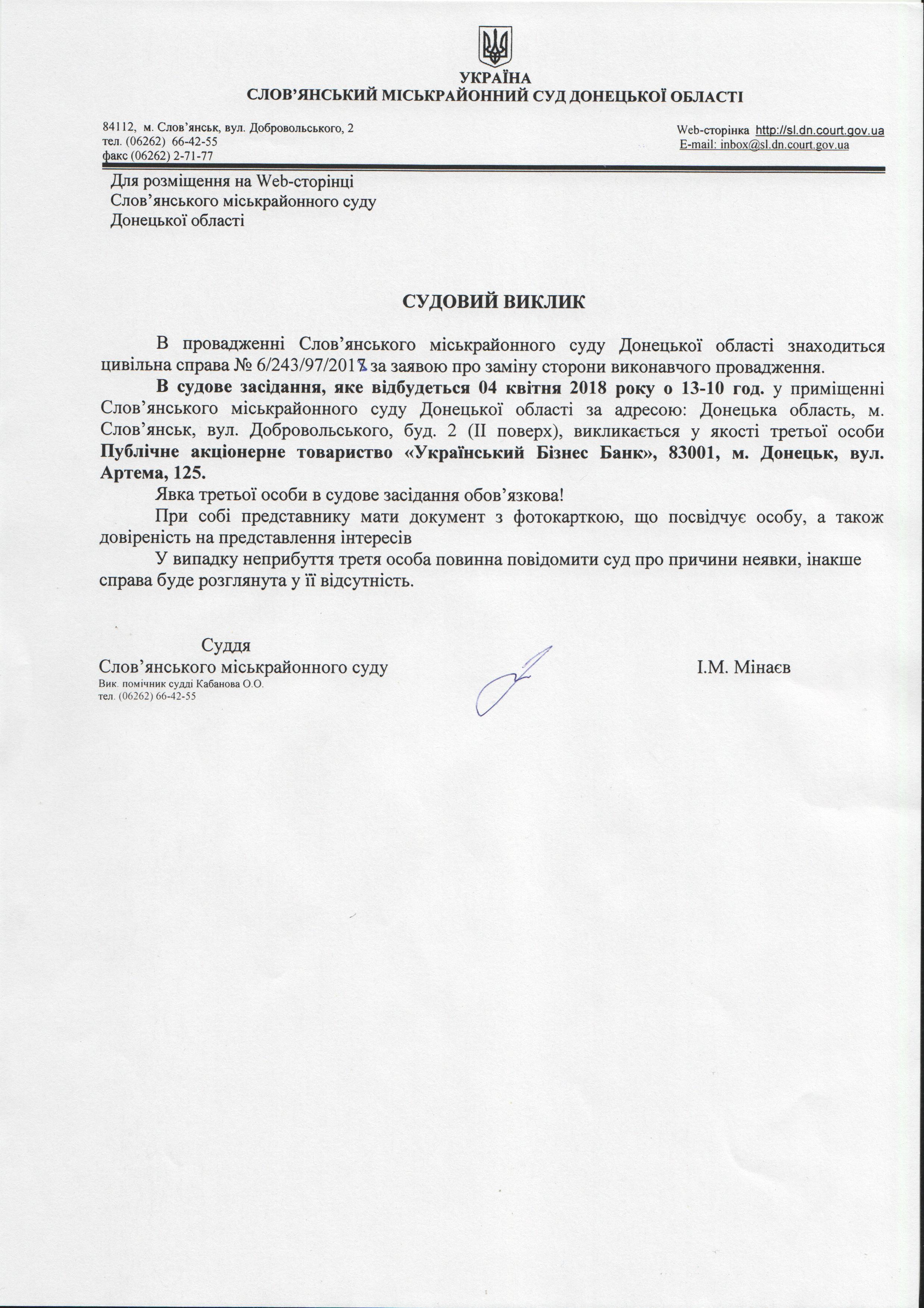 Оголошення по цивільній справі №6/243/97/2018 за заявою про зміну сторони виконавчого провадження.